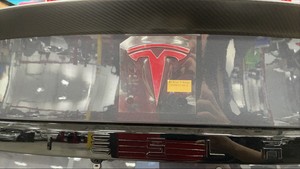 - Visually inspect the rear tesla badge and verify proper installation. Wipe away any contamination.