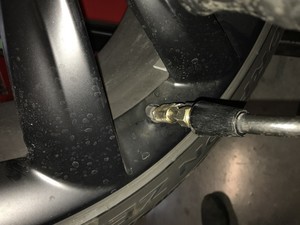 - Rotate tire and wheel so that upper roller is 100mm in front of the valve