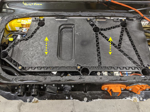 NoteOnly use non-conductive non-marring tools to break sealant, Be cautious not to severely bend and deform the access cover, Be cautions and do not damage the internal components or HV battery casing.