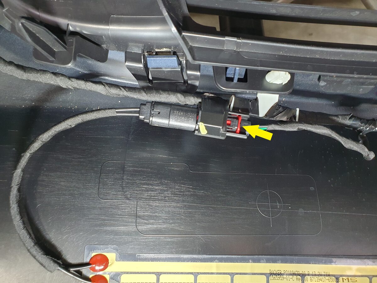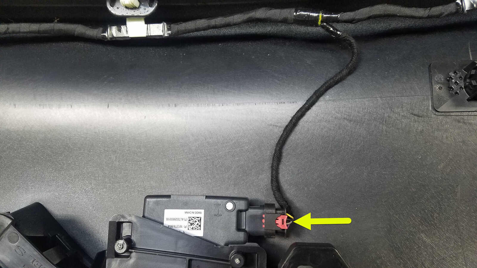 NotePull the red tab to disengage the lock, and then disconnect the radar heater electrical connector.