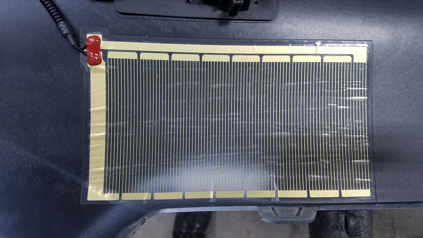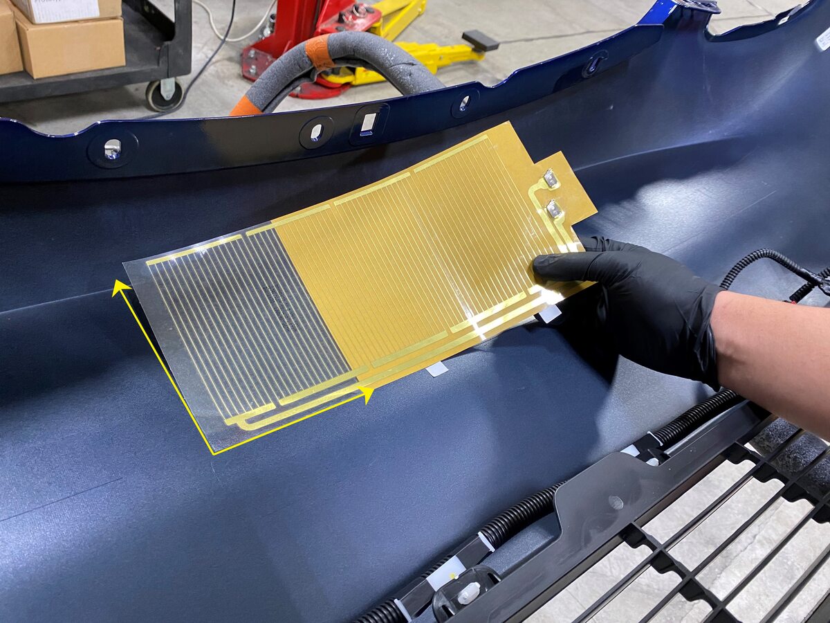 center of the radar heater, align the bottom onto the scribe line, and then adhere the