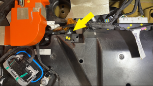 - Release the HV battery pyrotechnic harness clip and patch anchor from the high voltage controller.
