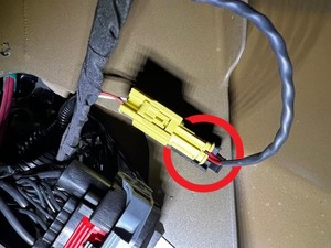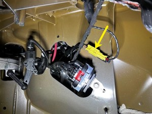 - Pull the locking tab outward to disconnect the LH pedestrian protection actuator electrical connector.