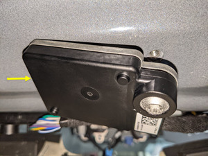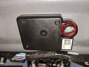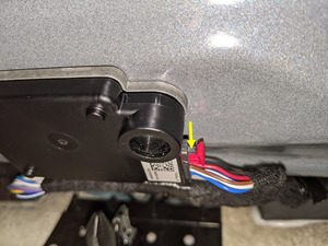 - Release the locking tab, and then depress the black to disconnect the interior radar assembly.