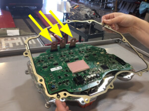on the rear drive unit LH inverter PCB. Replace the gap pad if it does not fulfill these