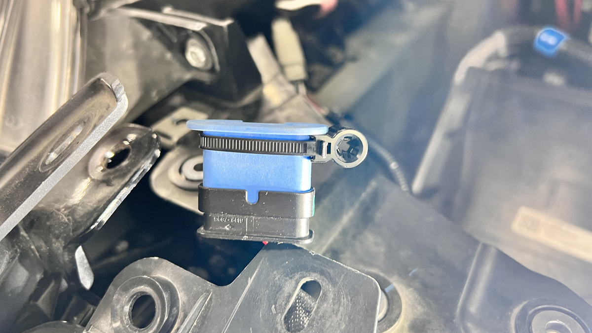 - Install a dummy plug (2208813-00-B) onto the front radar connector.