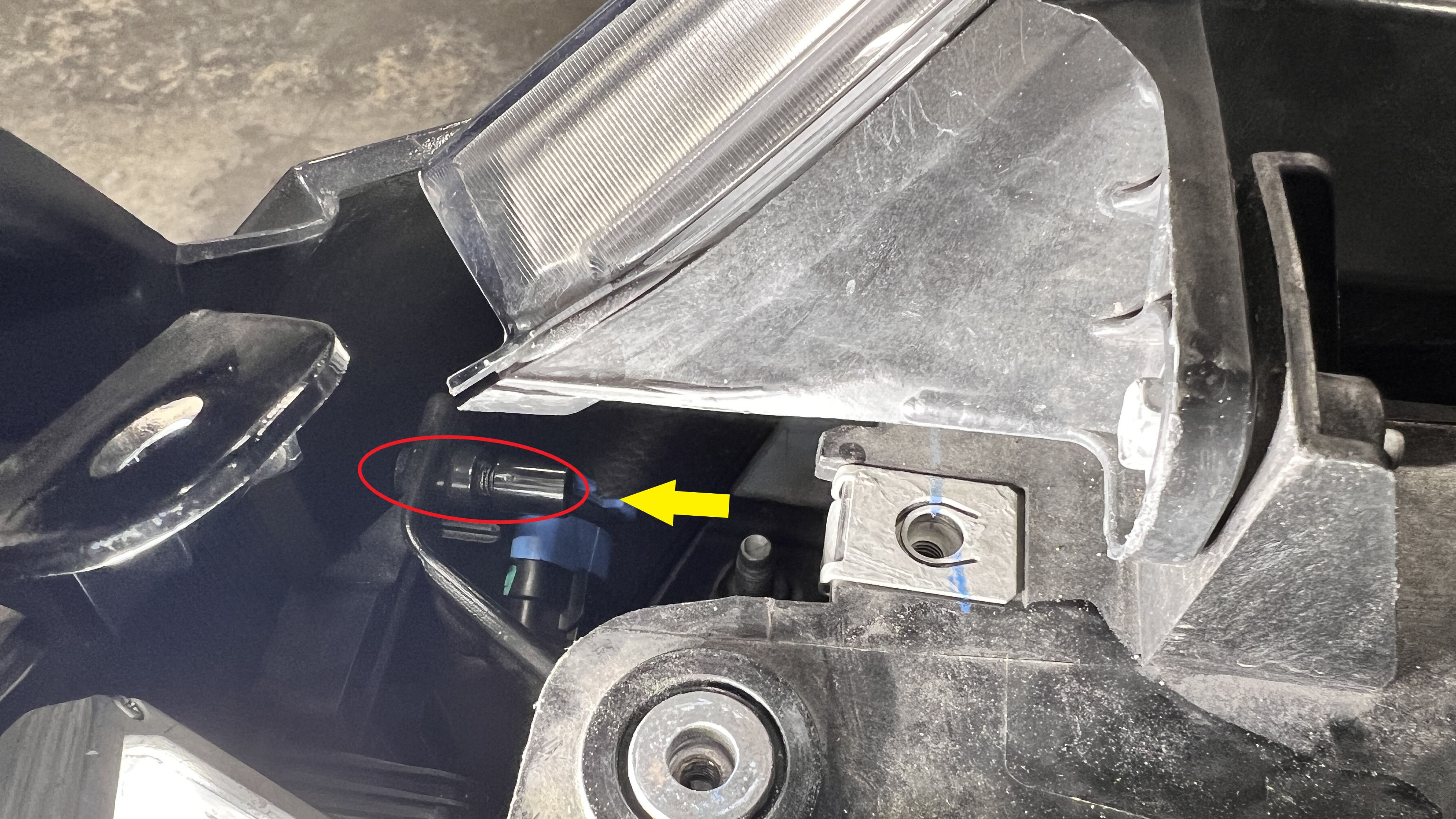 radar mounting bolt protruding from the back of the radar bracket.