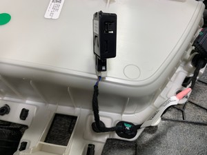 - Release the locking tab, and then disconnect the LH front door puddle light from the door trim panel harness.