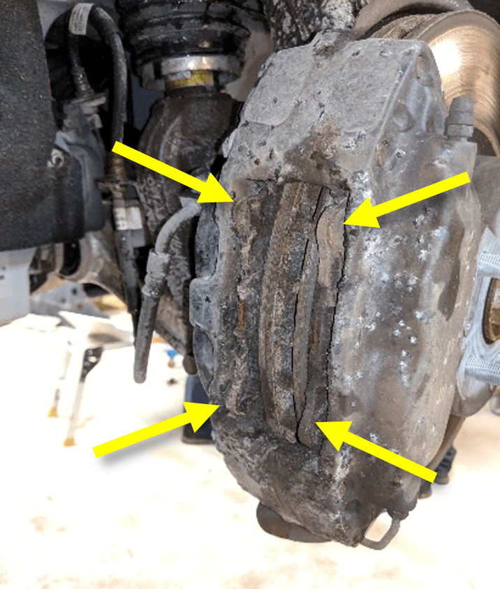 corrosion build-up from brake caliper components. If that is ineffective, escalate to a