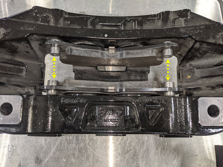 outboard brake pad's caliper contact points.