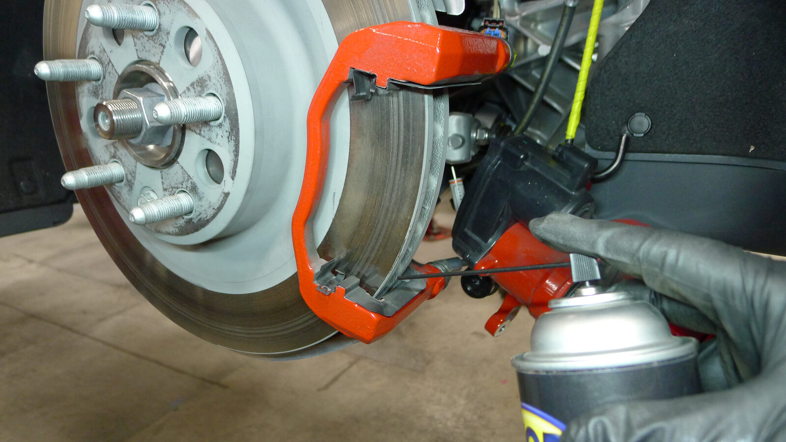 - Rotate the LH rear rotor 180 degrees, and then use the Tesla–approved brake cleaner to clean any debris from the rotor. Repeat.