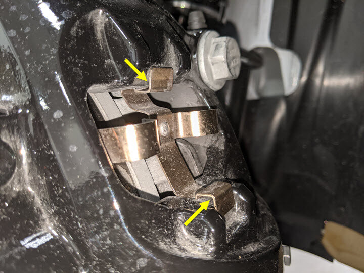 "Hook" the brake pads into the