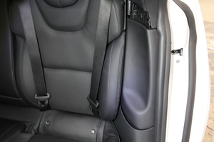 Hook the bottom tab of the LH 2nd row seat side bolster into the LH lower C-pillar,