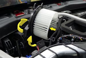 Install the screws (x3) that attach the HVAC blower motor to the HVAC assembly.