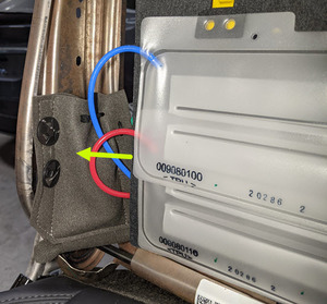 - Install the clips (x2) that attach the driver seat harness from the driver seat backrest lumbar support.