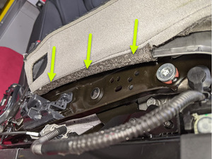 - Secure the soft trim retainer on the inboard side of the seat frame.