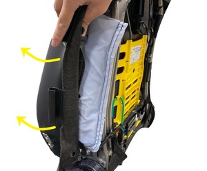 - Secure the seat back elastic straps (x2) to the seat frame.