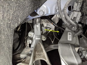 | Bolt that attaches the ride height sensor arm to the upper fore link |