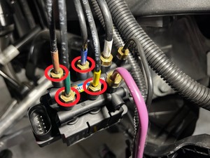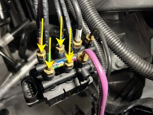 - Remove the plastic plugs (x7) from the air suspension valve block.