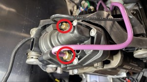 - Release the locking tabs, and then disconnect the electrical harnesses (x2) from the air suspension compressor.