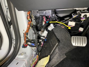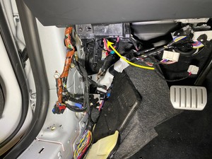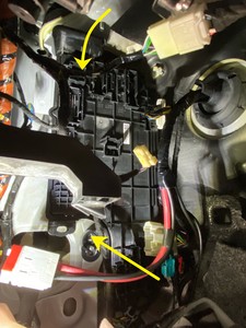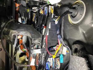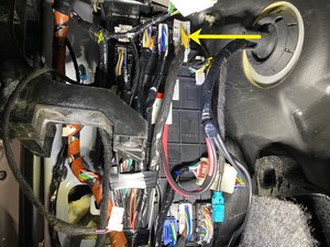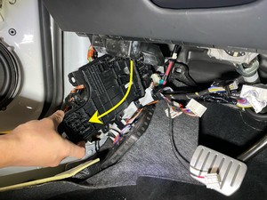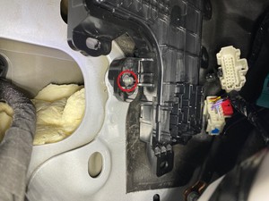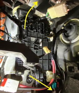 - Use a clip prytool to release the clip that attaches the harness to the LH body controller.