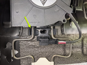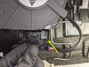 - Disconnect the driver seat cushion ventilation electrical connector from the cushion fan.