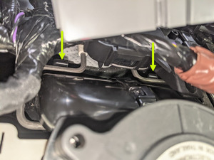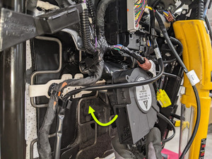 - Fasten the clip that attaches the driver seat harness to the seat frame bracket.