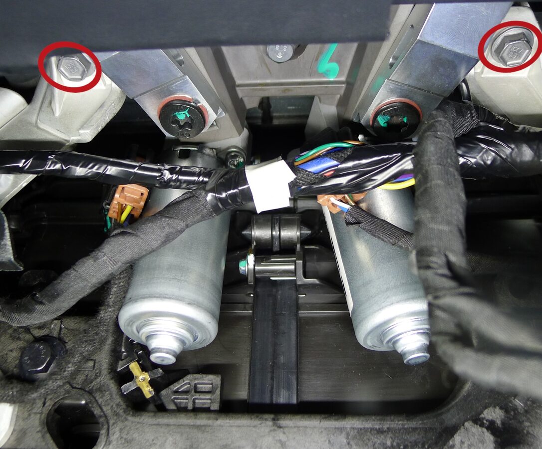Release upper steering column bracket IP carrier bolts at bulkhead
