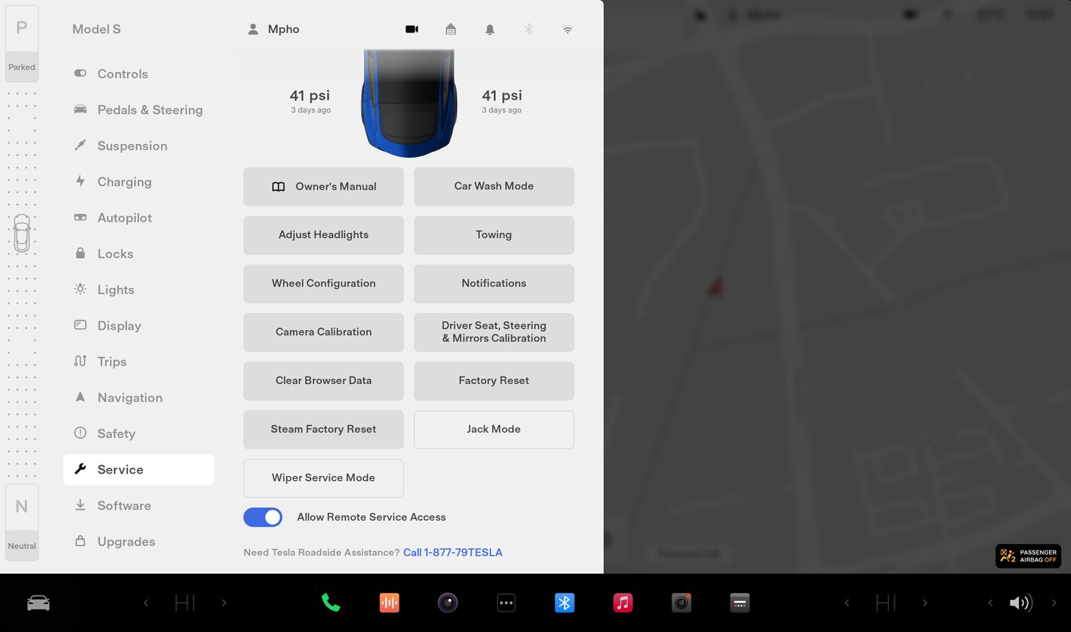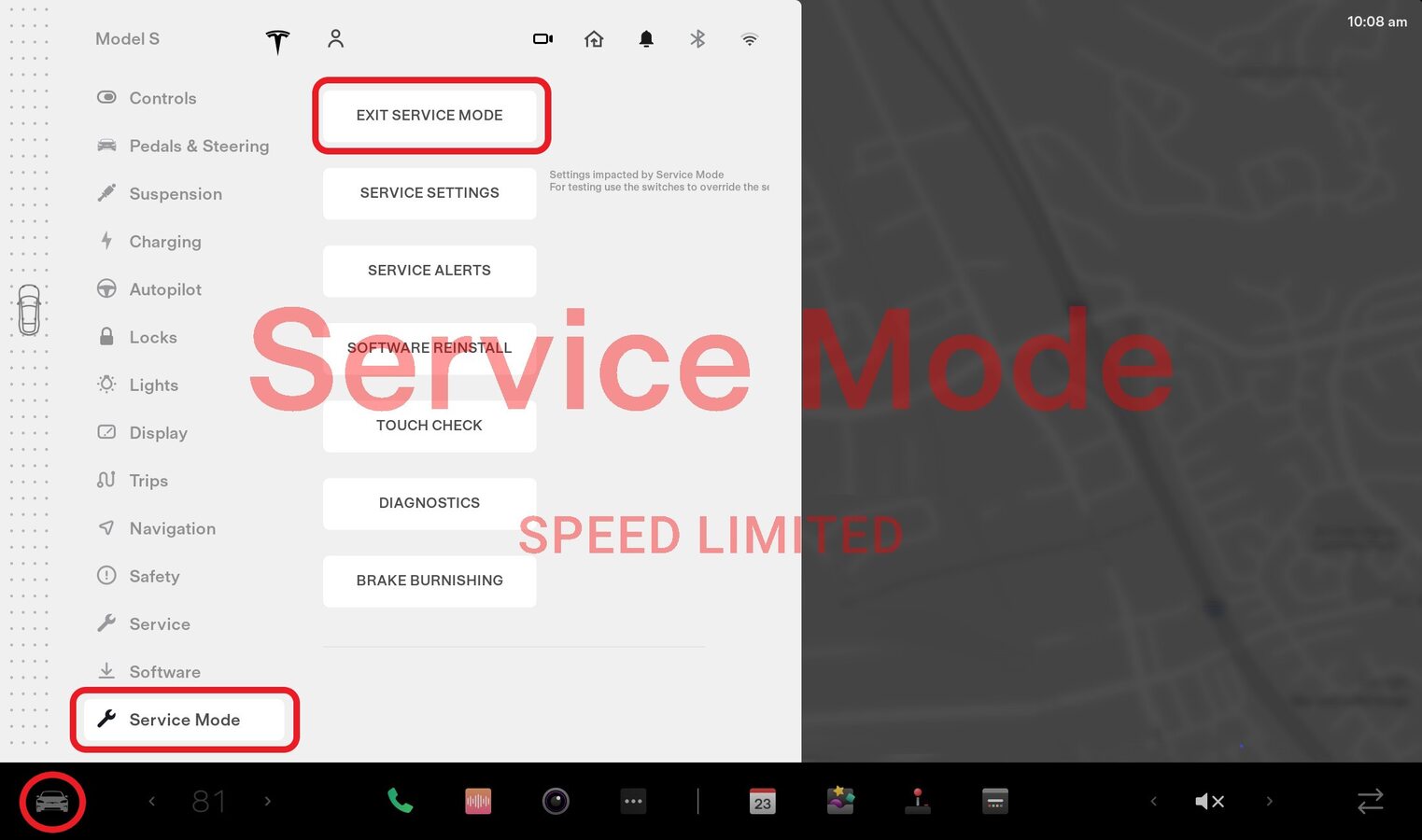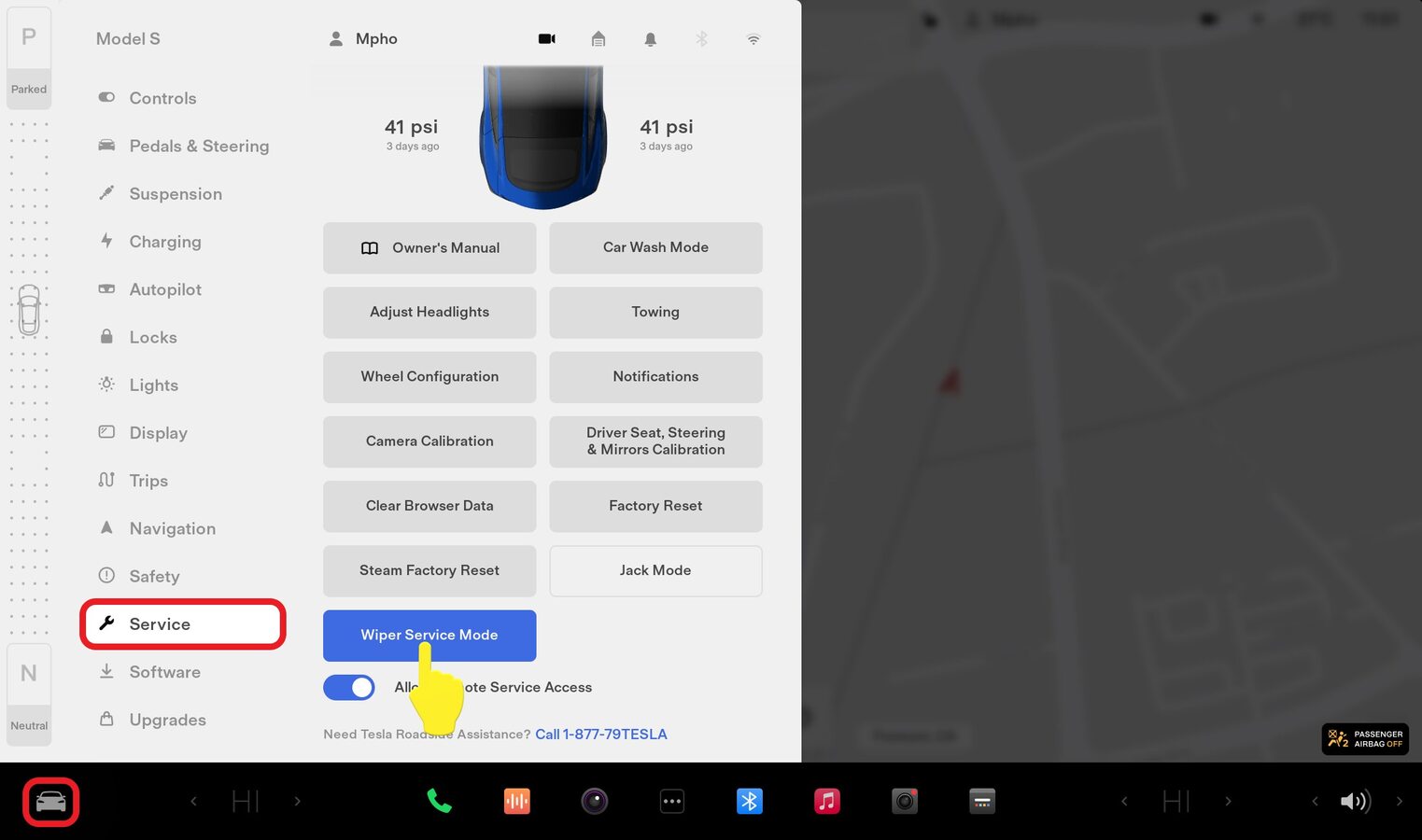 Place vehicle in service mode via UI