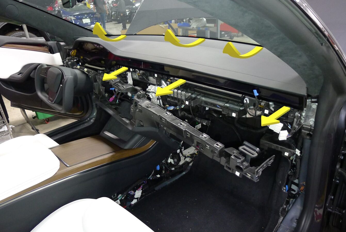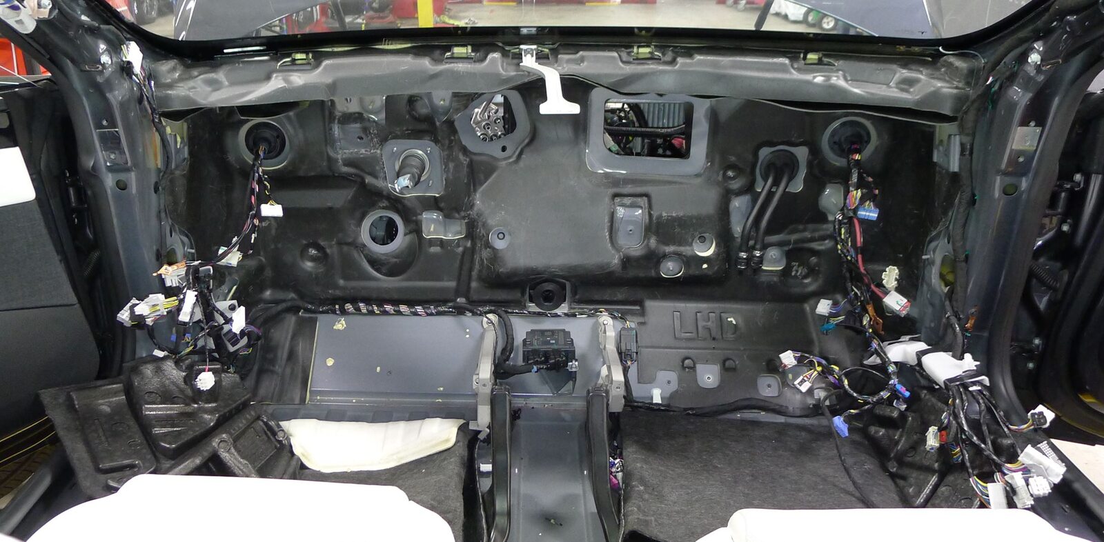 - Route display harness behind LH display bracket
