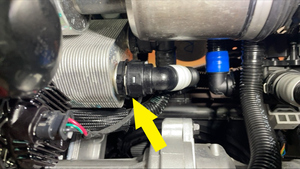 - Remove the front drive unit heat exchanger to supermanifold hose from the vehicle.