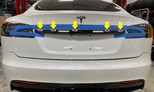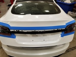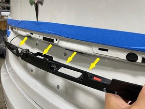 - Apply masking tape around the liftgate tail lights and applique.
