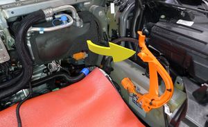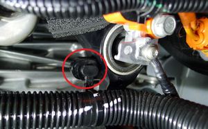 Release the HV heat pump bracket from the compressor eyelet