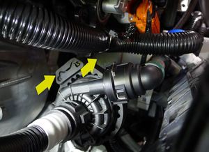 Install coolant pump onto AC compressor bracket