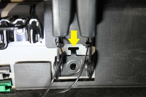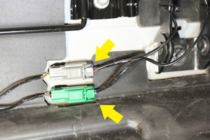 - Secure the electrical connectors (x2) for the center seat belt buckle.