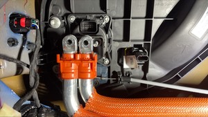 - Remove the charge port busbar safety cap. See Safety Cap - Busbar - Charge Port to HV Battery (Global) (Remove and Replace).
