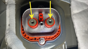 each HV joint from the HV busbar lead to the charge port stud (x2 HV joints).