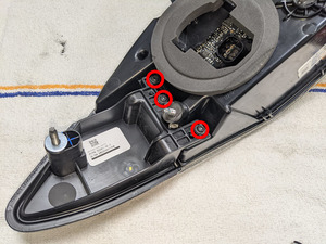 - Position the datums on the fixed door, and then install the screws (x3) that attach the fixed door to the RH taillight.