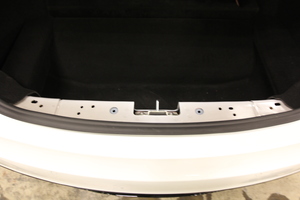 - Release the 6 clips that attach the trunk sill panel to the vehicle.