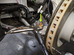 - Remove the brake rotor run out flex bar from the front tie rod nut.