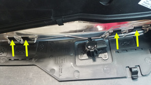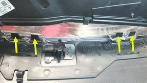- Release the tabs (x4) that attach the RH front fascia lamp assembly to the front fascia, and then remove the lamp from the fascia.