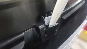 adhere the bottom portion onto front fascia assembly.