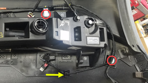 - Position the harness onto the front fascia assembly, and then install the clips that attach the harness to the fascia.