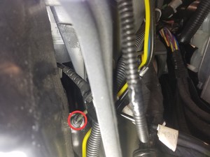 Install the bolt the attaches the LH side of the HEPA assembly to the lower dash.