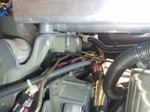 - Install the clips (x2) that attach the air suspension rear bundle to the RH side of the frunk harness.