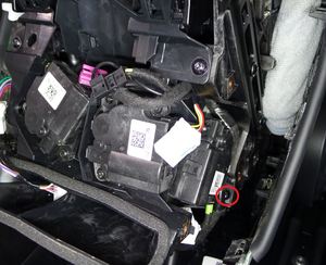 - Disconnect the electrical connectors (x5) and release the clip that attaches the center console wiring harness to the center console air wave assembly and actuators.