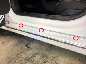 - Fasten the bottom clips (x7), and then the upper tabs (x7) that attach the LH rocker panel scuff plate to the LH rocker panel.