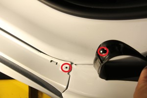 - Fasten the clip that attaches the LH body side secondary seal to the rear of the LH rocker panel scuff plate.