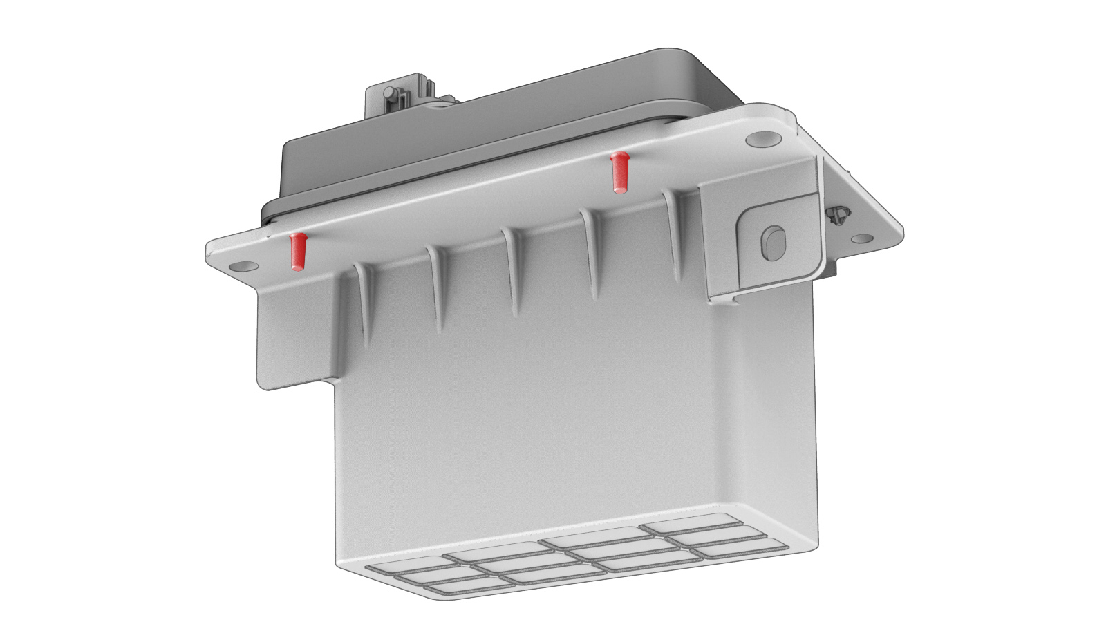 - Install the tabs (x4) and datums (x2) that attach the HEPA filter assembly cover.