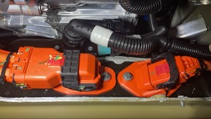 Securing clip attaching PCS hose to HV battery